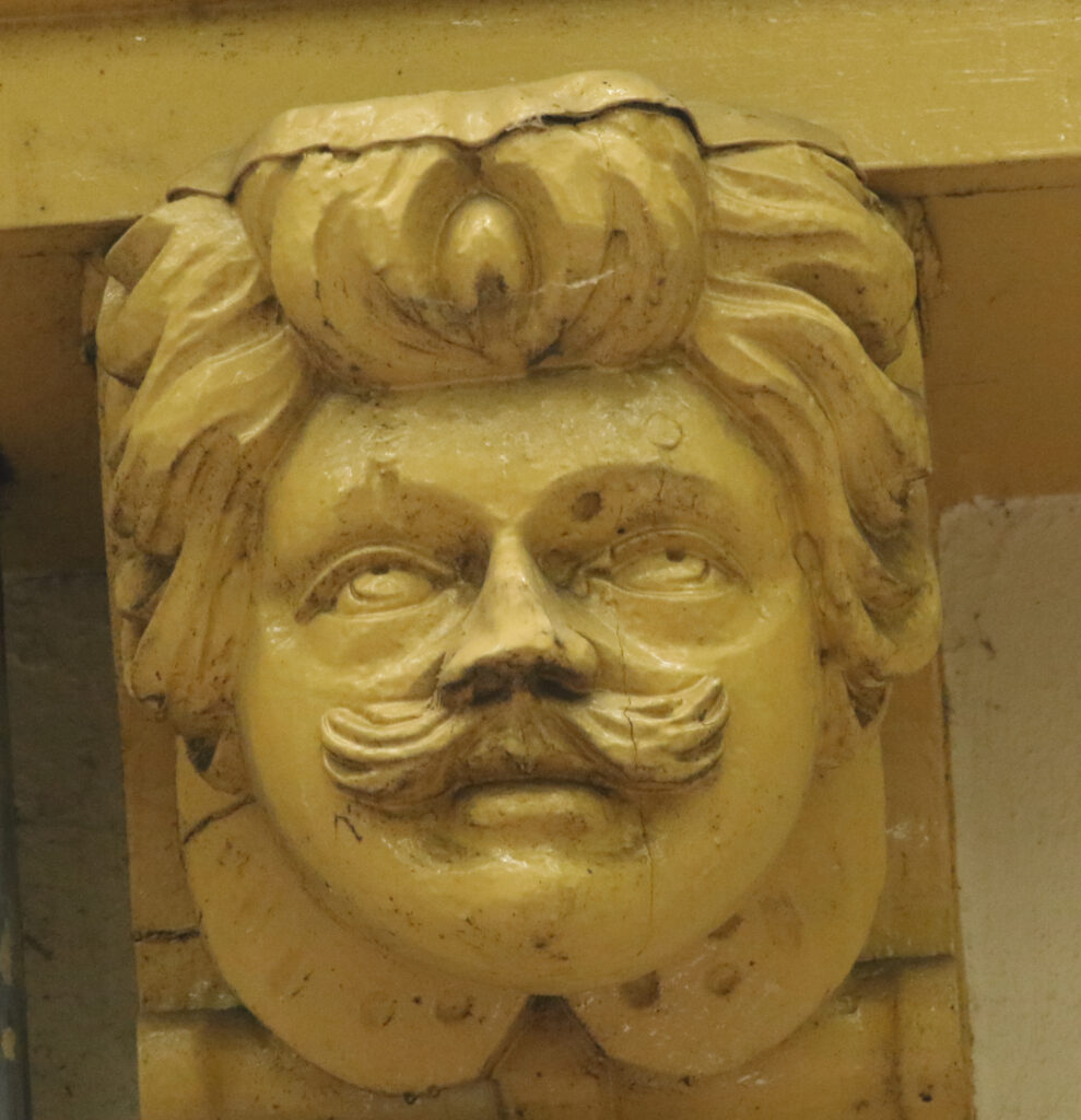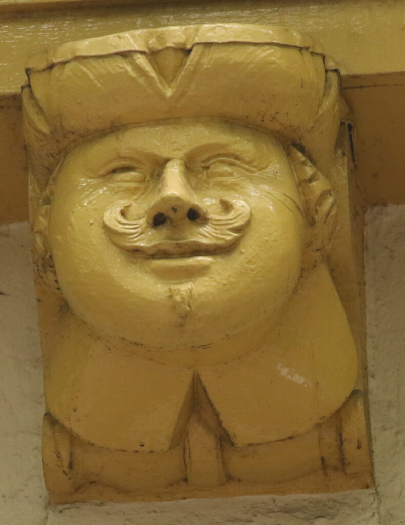 Bij een restauratie in 1986 werd een vergane kop vervangen door het portret van de toenmalige burgemeester Vos-van Gortel, vervaardigd door de Utrechtse beeldhouwer J.L. Esenkbrink. Vanuit de zuidwesthoek kijkt ze de straat in.